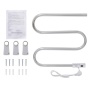Полотенцесушитель электрический крепится к стене помещения с помощью креплений (клипс), входящих в комплект поставки. Полотенцесушитель должен подключаться к сети электропитания через специальные электрические розетки, имеющие заземляющие контакты. Нагрузка на полотенцесушитель не должна превышать 5 кг.